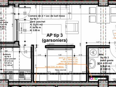 Apartament - Garsoniera bucatarie separata balcon de vanzare 33.6mpu