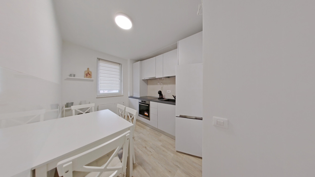 - Bucătăria dispune de electrocasnice de calitate, iar în baie vei găsi tot ce ai nevoie pentru confortul zilnic.