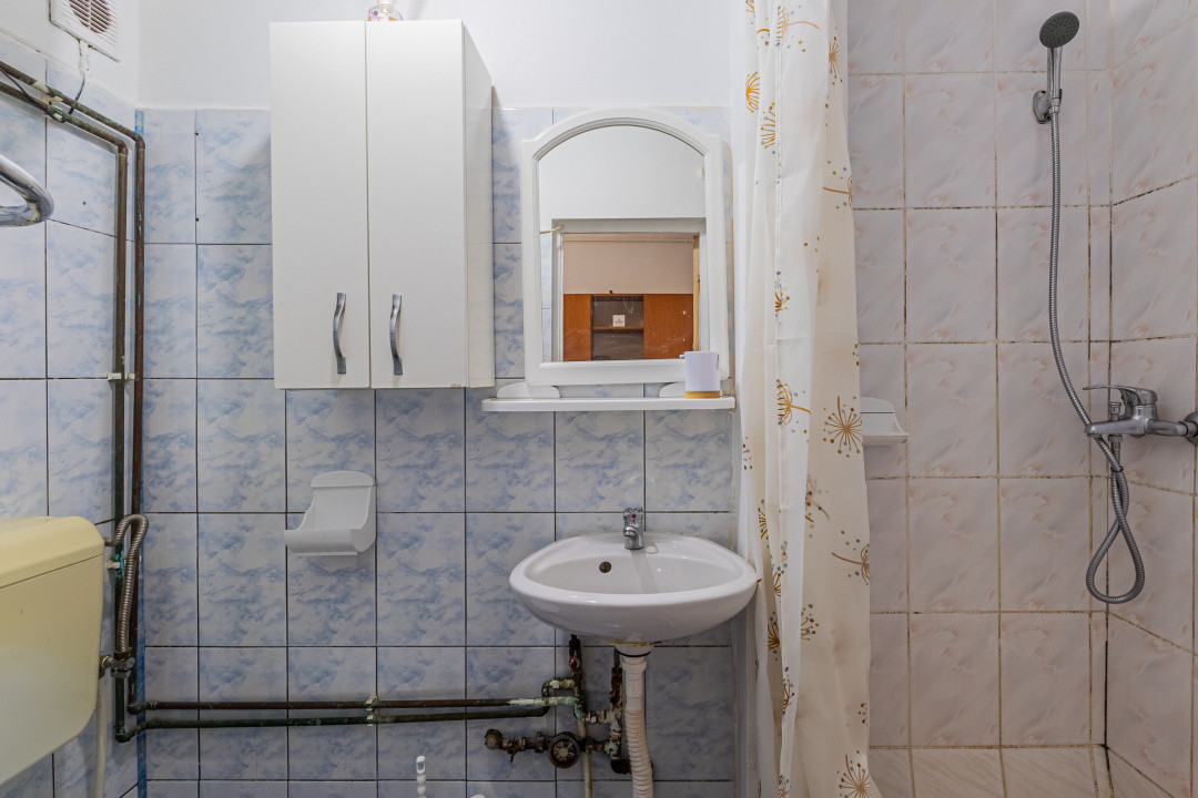 Camera este luminoasă, cu ferestre mari ce oferă o priveliște deschisă. Zona de locuit este separată de bucătărie, creând un plus de intimitate și organizare. Bucătăria este mobilată și utilată cu aragaz și frigider. Baia este dotată cu cabină de duș, iar în cameră există mașină de spălat și spațiu de depozitare prin dulapuri. Cartierul Noua este cunoscut pentru liniștea și aerul său curat, având în apropiere parcul Noua, Lacul Noua, grădina zoologică, magazine, stații de autobuz și școli. Accesul spre centrul orașului este facil, iar zona oferă atât facilități urbane, cât și spații verzi pentru relaxare.