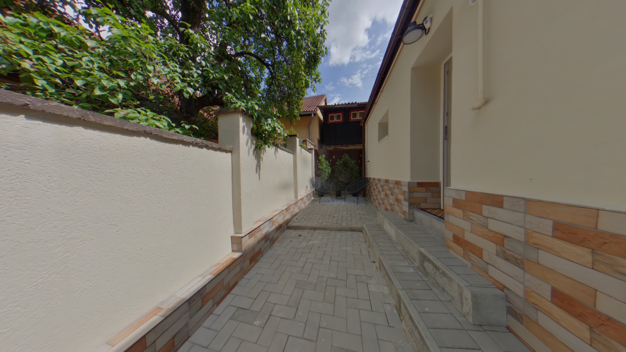 Proprietatea dispune de o curte de aproximativ 50 mp, care include o terasă în aer liber, perfectă pentru momente de relaxare și pentru a vă bucura de aerul proaspăt în orice moment al zilei.