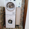 Bucătărie complet utilată: frigider, aragaz, cuptor cu microunde, hotă, mașină de spălat si de uscat haine