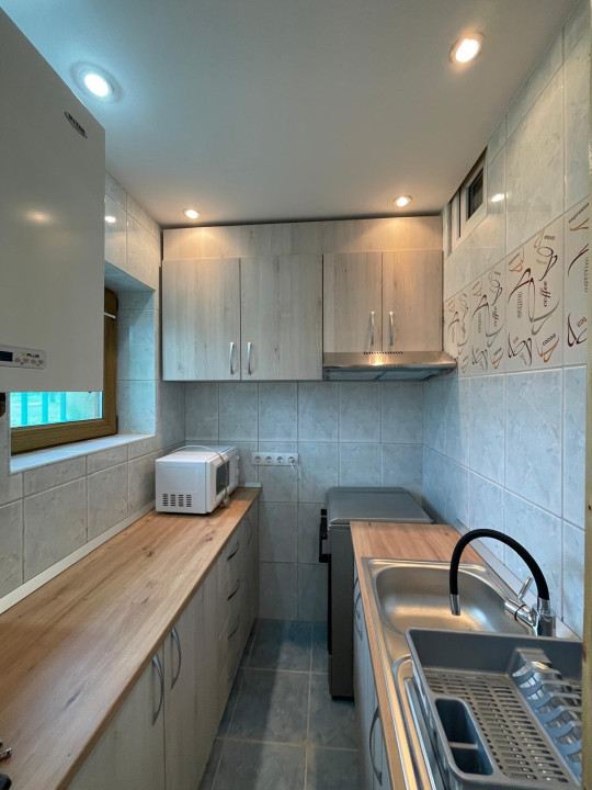 Descriere: Garsoniera este mobilată complet, cu un design modern și funcțional. Bucătăria este dotată cu electrocasnice noi, iar spațiul este optimizat pentru confort și utilitate.