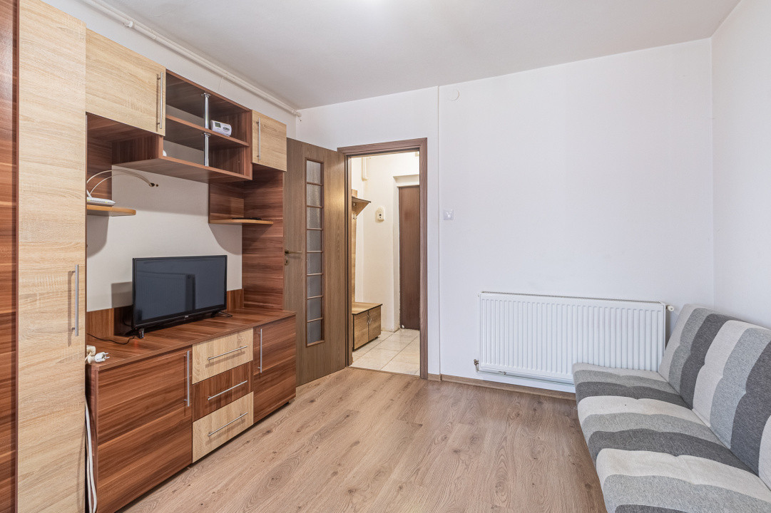 Garsoniera cu o suprafata de 24mp este compusa din: camera, bucatarei, baie, hol , balcon, este semidecomandata si este situata la parterul unui bloc de 4 niveluri. Avand in vedere zona in care este situata, respectiv in zona Bartolomeu, garsoniera este pretabila a fi achiziționată și pentru investiție (închiriere sau regim hotelier)
