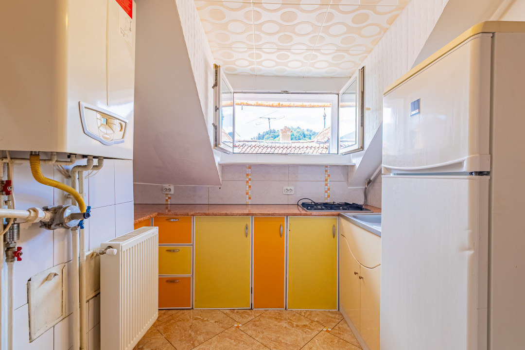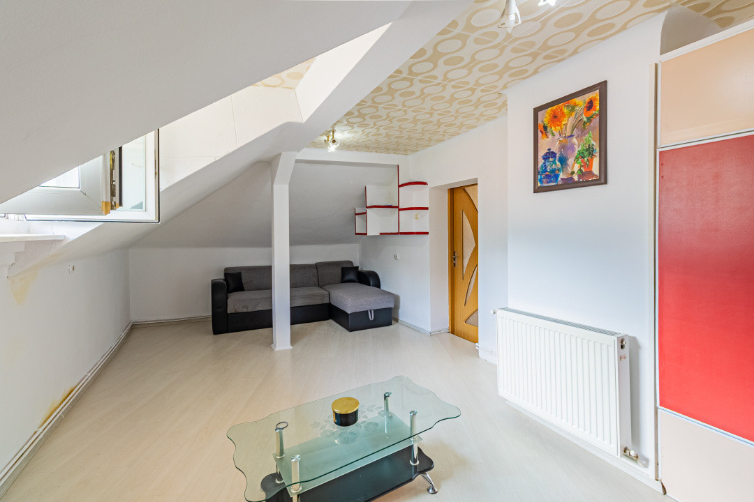 Se vinde o garsonieră situată pe strada Constantin Brâncoveanu nr. 45, în inima centrului istoric. Proprietatea se află la mansardă, are o suprafață utilă de 38 mp și este compartimentată eficient: bucătărie separată, cameră spațioasă și o baie.