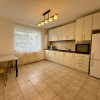 Bucătăria este închisă, generoasă și complet mobilată și utilată, dotată cu frigider, cuptor electric, aragaz, hotă, cuptor cu microunde și mașină de spălat rufe. Dormitorul este luminos și confortabil, cu pat matrimonial și multiple spații de depozitare, oferind suficient loc pentru organizare și confort zilnic.