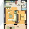 Se compune din: living spatios open space cu bucataria, dormitor luminos, baie prevazuta cu cada si holul de intrare. Terasa se intinde pe toata lungimea apartamentului si are acces atat din living cat si din dormitor.
