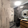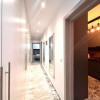 Mobilierul este realizat pe comandă, cu finisaje de calitate, iar locuința este complet utilată: frigider, mașină de spălat, mașină de uscat haine și toate electrocasnicele necesare.