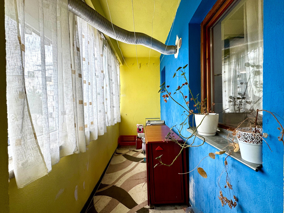Locuința dispune de balcon închis, baie cu geam pentru aerisire naturală, centrală termică proprie și se vinde mobilată și utilată complet, pregătită pentru mutare imediată.