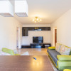 Un mare avantaj al acestui apartament este mutarea bucătăriei în zona logiei. Această soluție inteligentă nu doar că a eliberat spațiul, dar transformă gătitul într-o plăcere, beneficiind de lumină naturală din abundență datorită ferestrelor mari. Bucătăria este complet mobilată și utilată și dispune chiar și de un mic bar pentru micul dejun, perfect pentru cafeaua de dimineață cu privire spre spațiul verde.