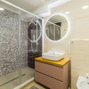 Apartamentul are o priveliște panoramică superbă și o terasă generoasă de 45 mp, ideală pentru relaxare.