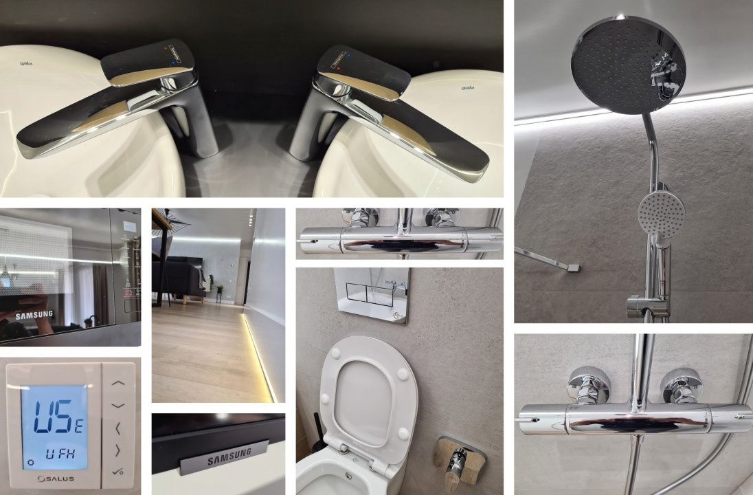 Nu te vei mai opari cand faci dus/baie, cu bateriile termostate. Capacele WC sunt cu soft close, foarte practice. Tot practice sunt si oglinzile care nu se vor mai aburi cand faci baie sau dus datorita functiei de dezaburire.