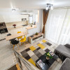 Un living generos cu bucătărie open-space, perfect pentru momentele de relaxare sau socializare.