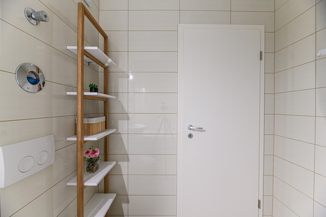 Apartamentul este conectat printr-o scară interioară elegantă din lemn, fiind structurat astfel: