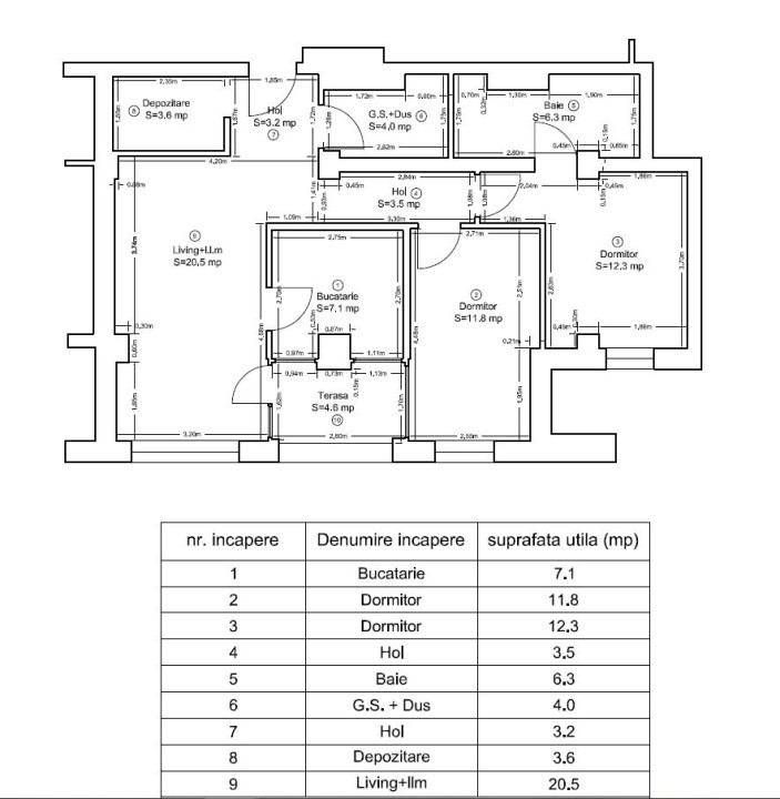 Apartamentul pe care vi-l propun se afla la etajul 7 al unui imobil cu 11 niveluri, finalizat in anul 2020 si beneficiaza de o structura decomandata, cu o suprafata utila de 73,36 mp, careia i se adauga si o terasa cu o suprafata de 4,6mp.