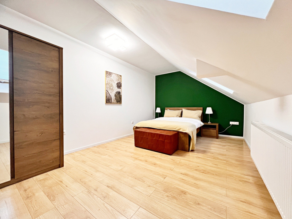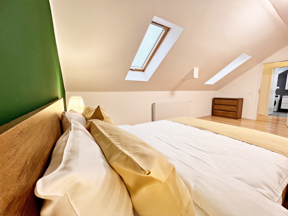 Două dormitoare confortabile, dispuse pe nivele diferite, pentru un plus de intimitate.