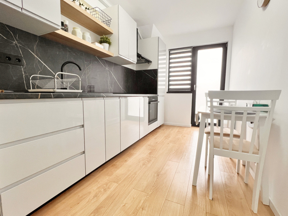 Apartamentul se vinde complet mobilat și utilat, cu finisaje moderne, mobilier de calitate și electrocasnice incluse.