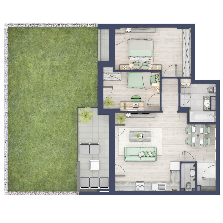 Apartament 3 camere - 2 bai - Gradina 63 mp