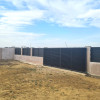 Împrejmuirea este realizată cu gard din bolțari, pe fundație de beton, asigurând durabilitate și intimitate, iar accesul se face prin porți metalice tip jaluzea, moderne și rezistente.
