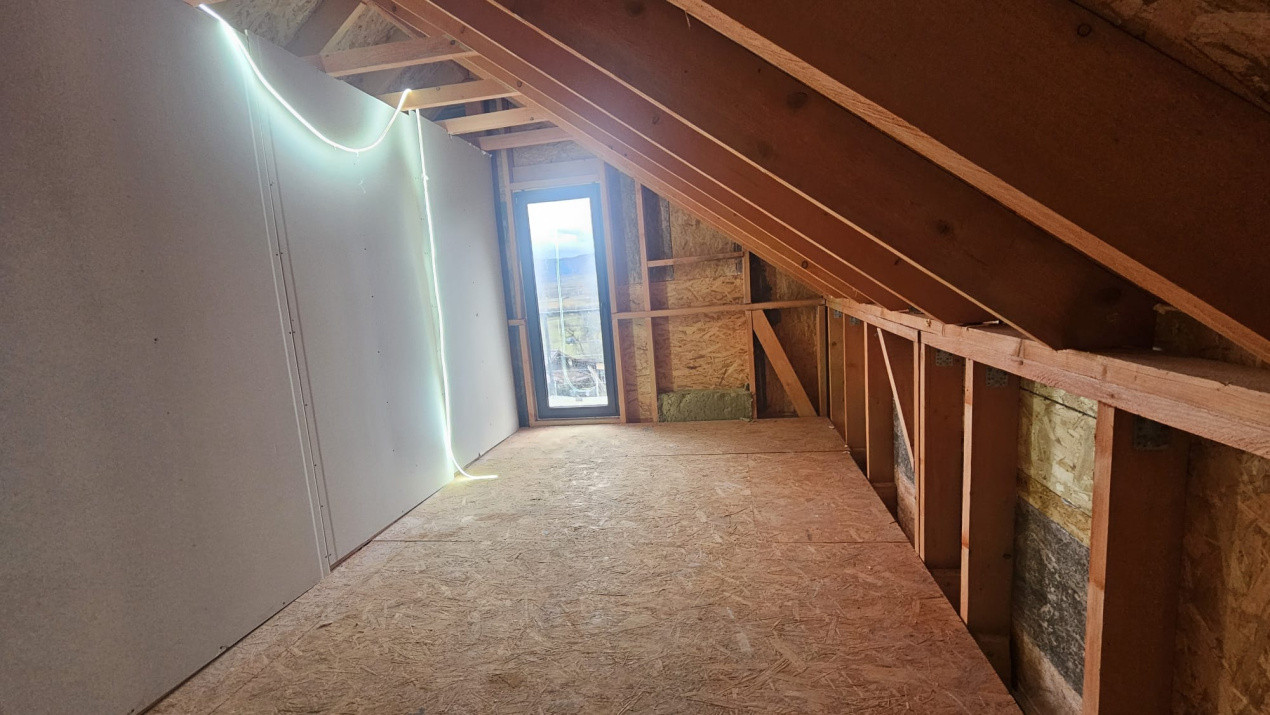 Construcție tip A-Frame, 72 mp amprentă la sol, 60 mp utili