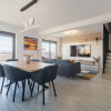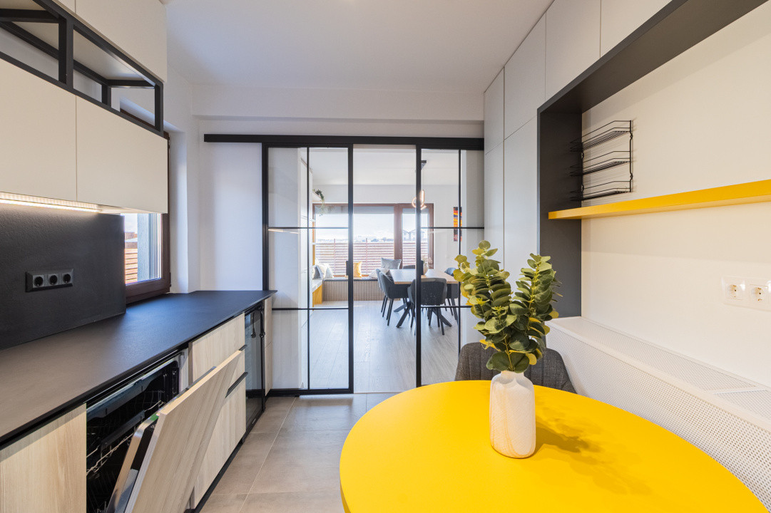 Bucătăria este complet utilată, fiind gata să susțină orice aventură culinară. Un detaliu ce face diferența? Frigiderul special pentru vinuri, elementul central pentru serile de relaxare sau pentru momentele în care ai oaspeți.