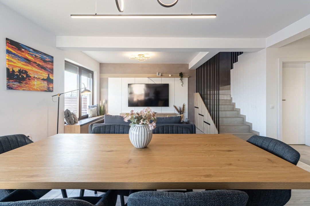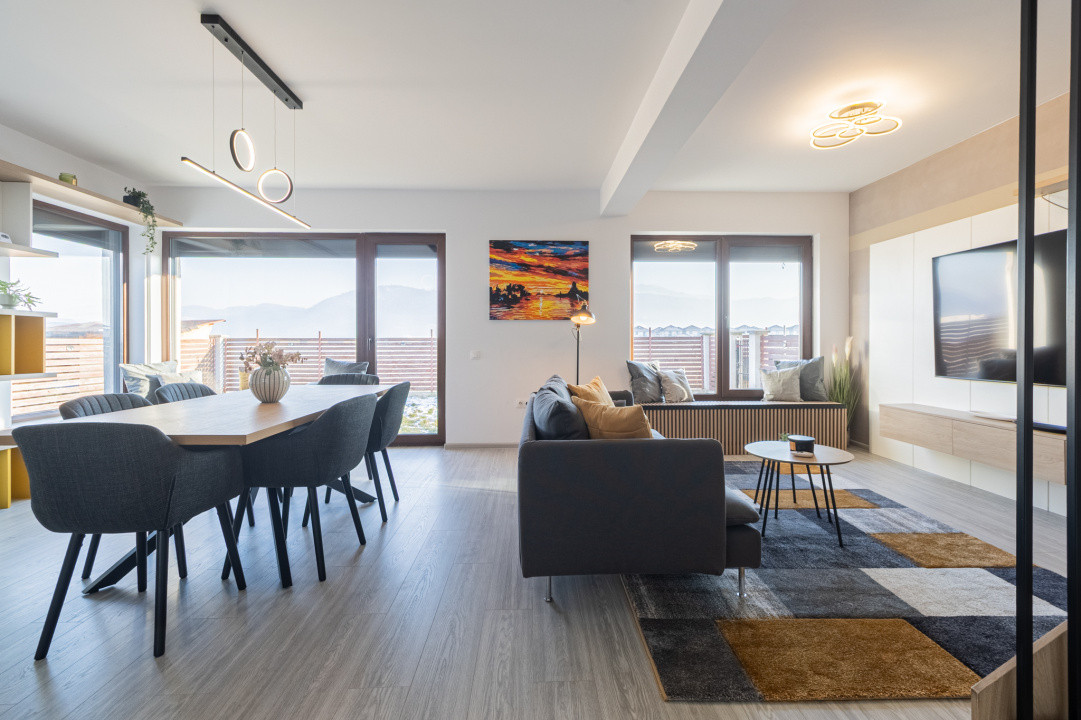 Zona de zi: Un living inundat de lumină naturală, ideal pentru momentele în familie.