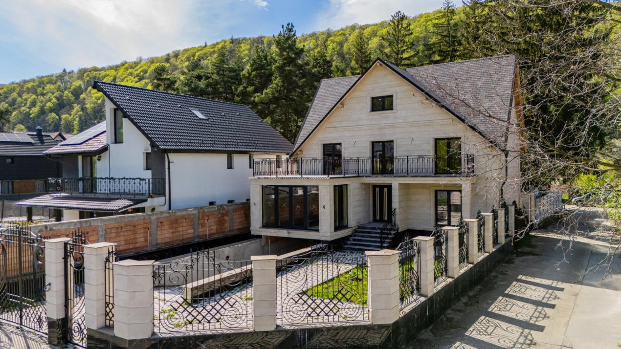 Vă prezint o casă cu totul specială, situată în cartierul Bunloc, din Săcele, într-o zonă rezidențială liniștită, cu acces restricționat doar pentru riverani, ideală pentru cei care își doresc intimitate, confort și un cadru natural deosebit. Zona Bunloc este apreciată pentru aerul curat, priveliștile către munte și accesul rapid către Brașov, fiind una dintre cele mai căutate locații pentru locuire permanentă, datorită echilibrului între natură și proximitatea față de oraș.