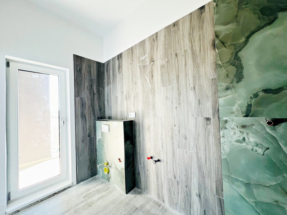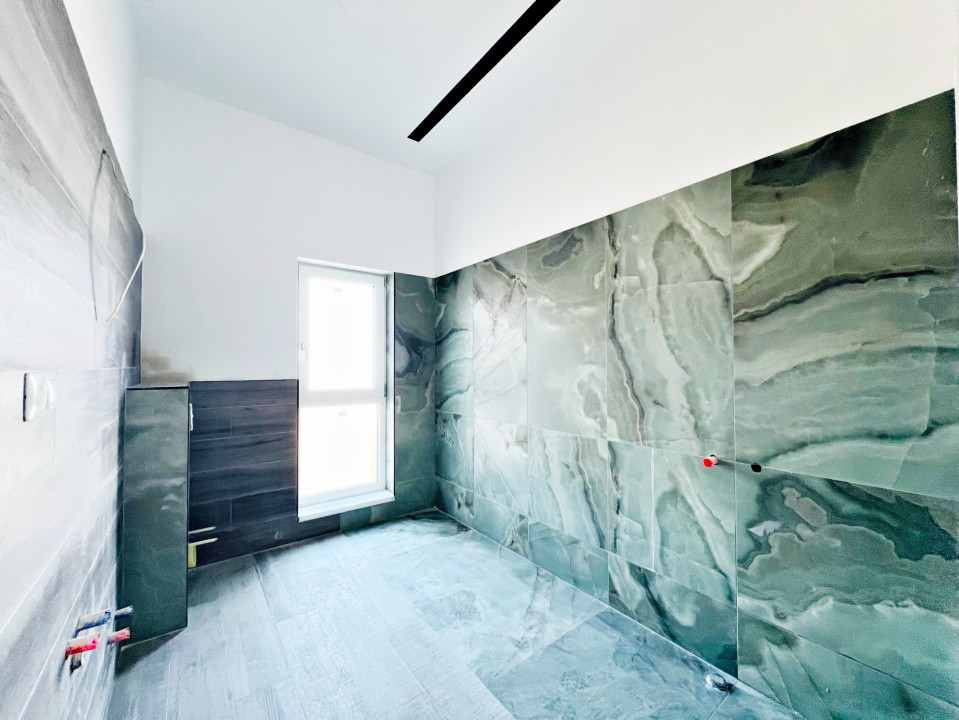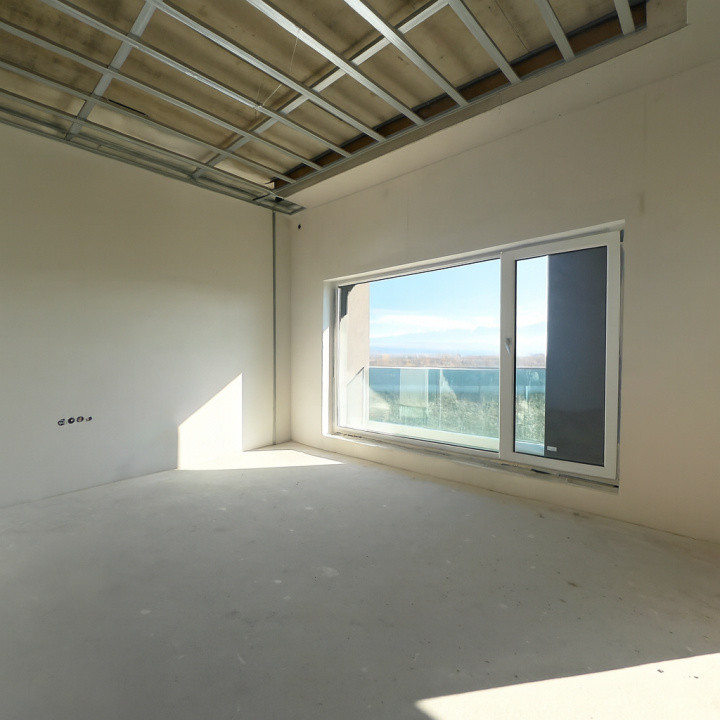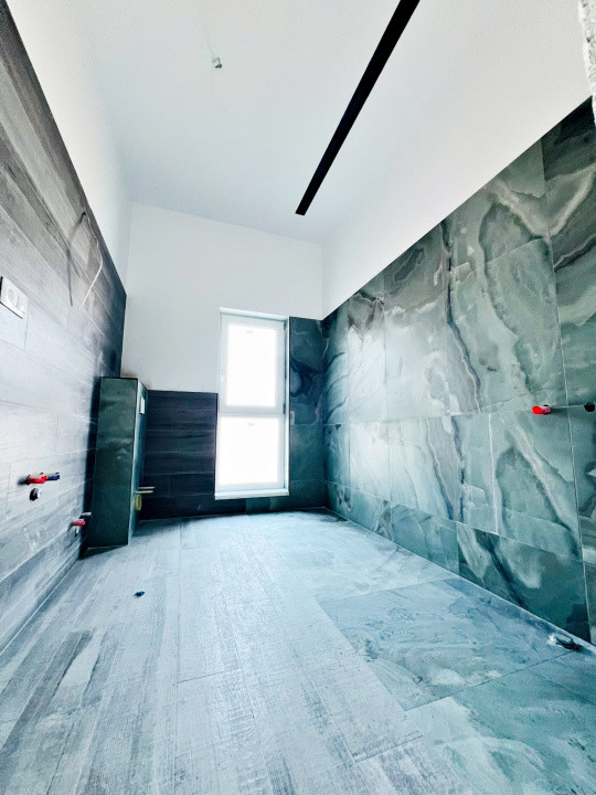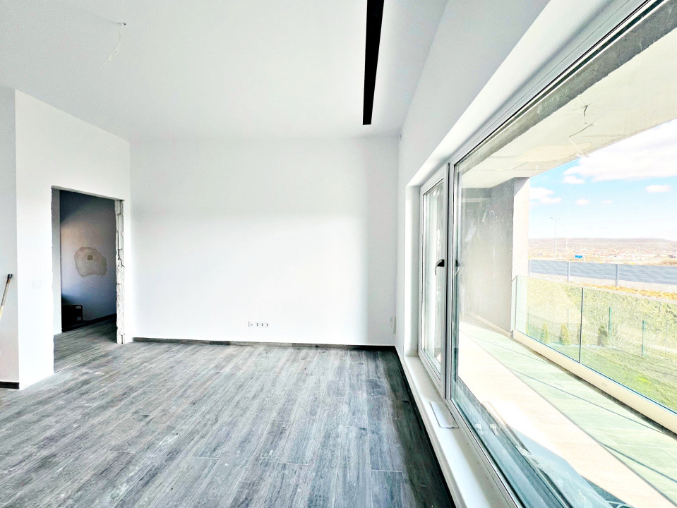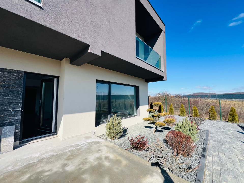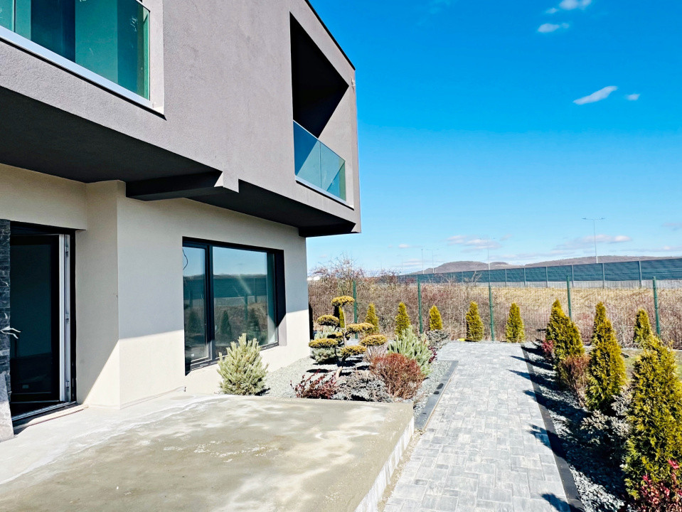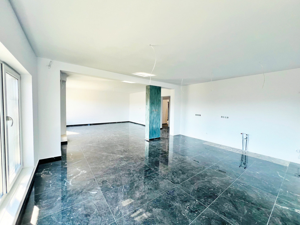 Parterul e dominat de un living luminos (30,5 mp) cu acces la terasă, o bucătărie spațioasă (27,1 mp), baie, spațiu tehnic, debara și un garaj generos (36,5 mp). La nevoie, acesta poate fi transformat într-un apartament tip studio, complet separat.