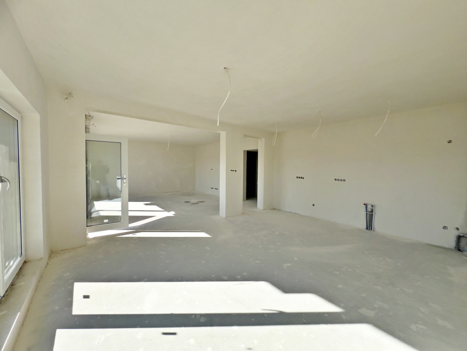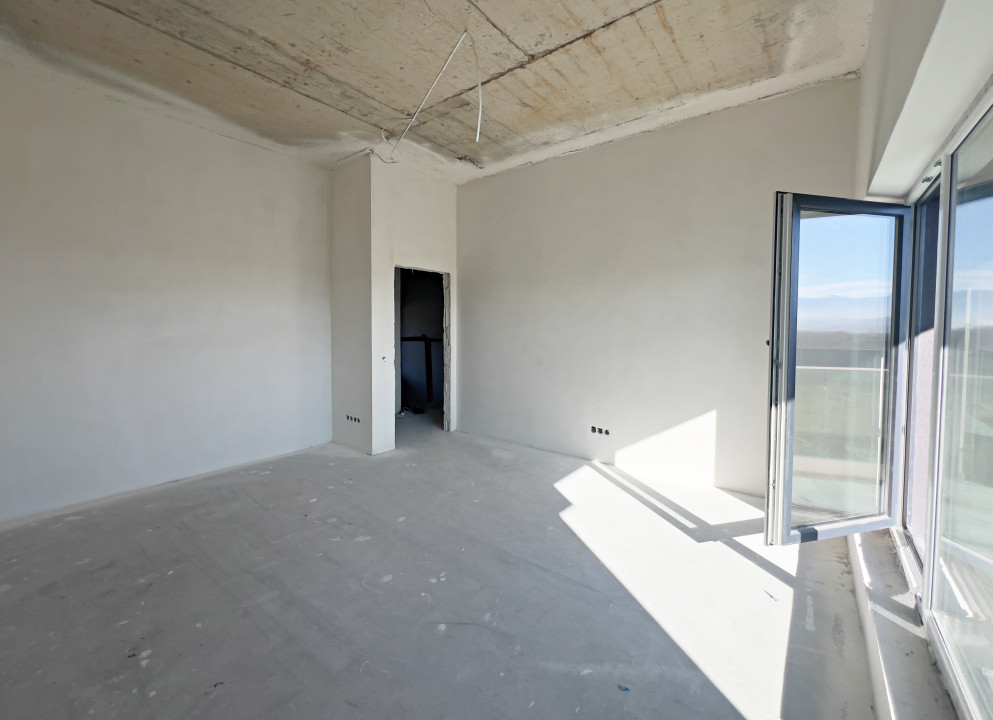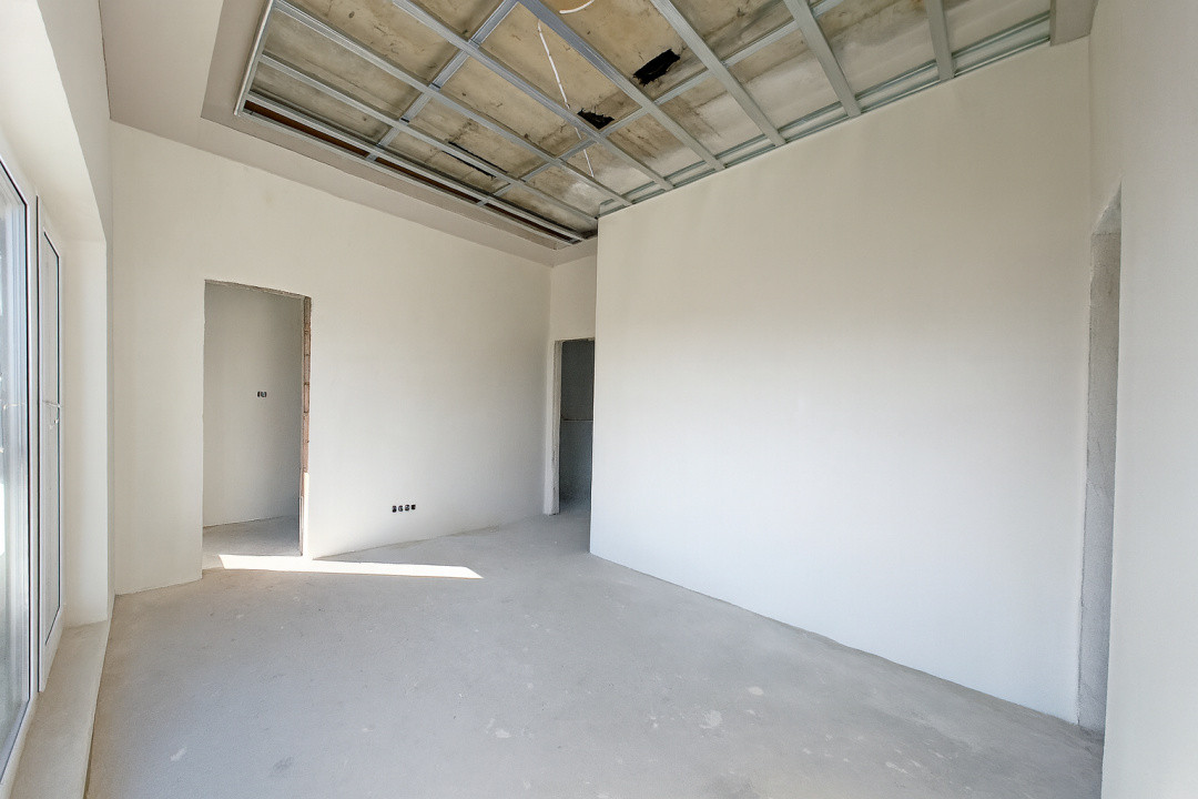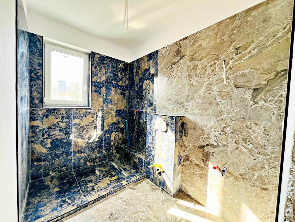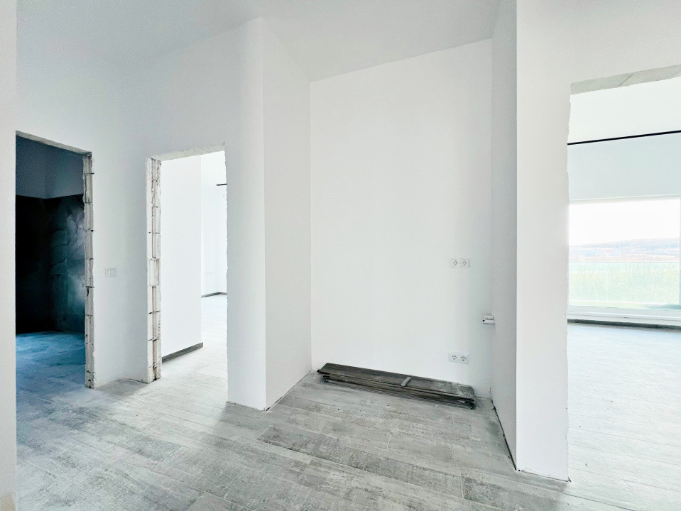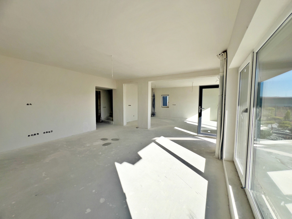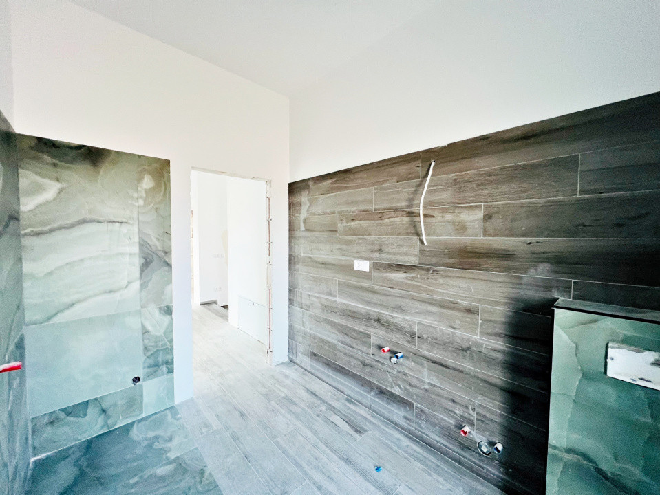 Parterul e dominat de un living luminos (30,5 mp) cu acces la terasă, o bucătărie spațioasă (27,1 mp), baie, spațiu tehnic, debara și un garaj generos (36,5 mp). La nevoie, acesta poate fi transformat într-un apartament tip studio, complet separat.