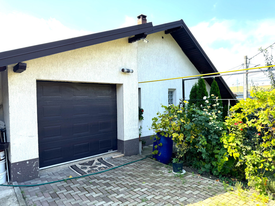 🚗 Garaj cu ușă automată + cameră tehnică pentru centrala termică (pe lemne sau gaz).