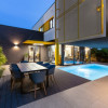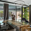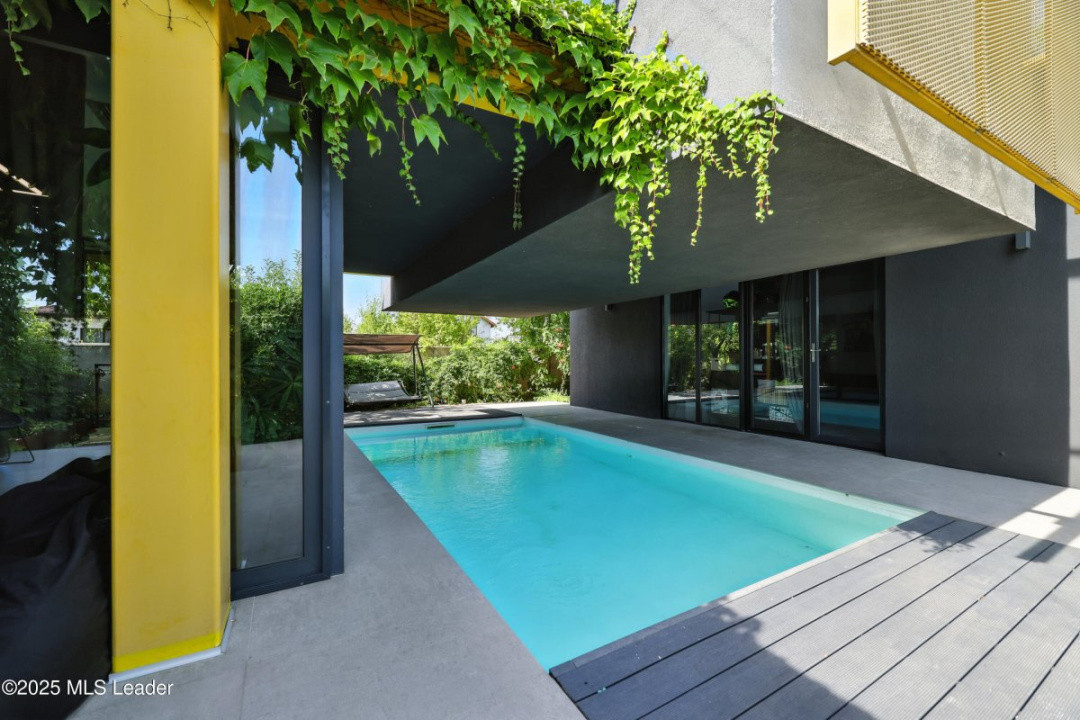 Construita in 2007, P+1E, vila are 202,5 mp utili si 4 terase (142 mp), doua dormitoare cu dressing si baie proprie, living, bucatarie deschisa, birou si hobby room. Piscina incalzita, pozitionata intre cele doua corpuri, adauga intimitate si eleganta.