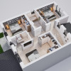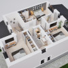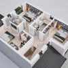 Livingul spațios, cu ieșire directă pe terasa acoperită, devine locul preferat pentru momentele petrecute împreună. Bucătăria separată, cele trei dormitoare luminoase și două băi completează un spațiu caracterizat prin funcționalitate și stil.