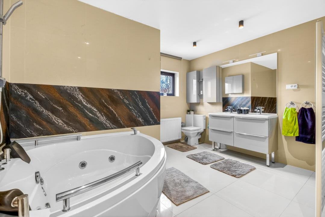 Casa are o suprafață utilă de 270 mp, la care se adaugă 3 balcoane cu o suprafață totală de 20 mp, și dispune de un regim de înălțime P+1 etaj. La parter, veți găsi un living spațios cu loc de luat masa, o bucătărie, un dormitor și o baie. O scară interioară vă conduce către etaj, unde se regăsesc un al doilea living, 3 dormitoare, o baie și un dressing, întreaga locuință beneficiind de lumină naturală pe tot parcursul zilei, ceea ce creează un ambient plăcut și confortabil. De asemenea, imobilul beneficiază de centrală proprie, asigurând confort termic pe tot parcursul anului.