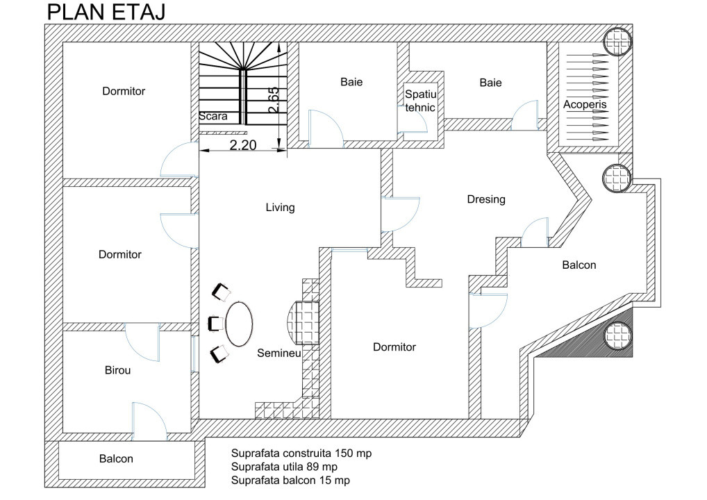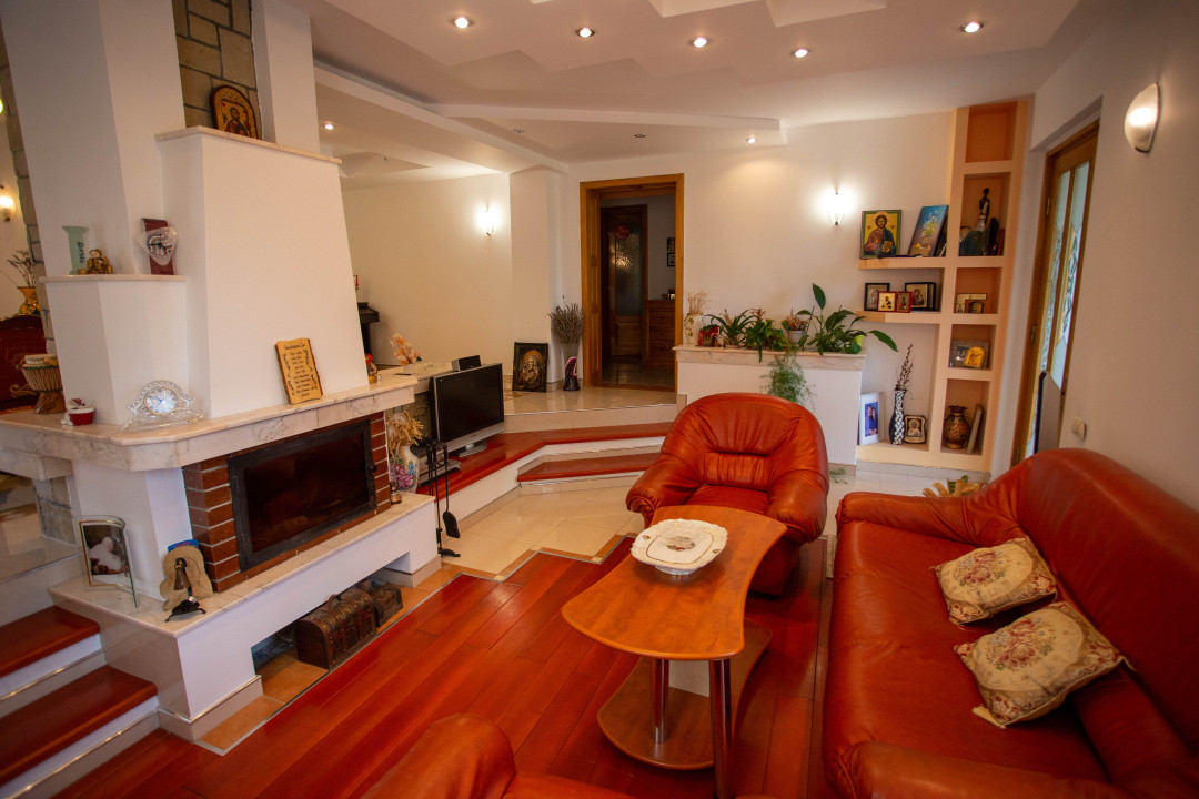Etaj: 3 dormitoare, 2 băi, dressing și un al doilea living cu șemineu + 2 balcoane.