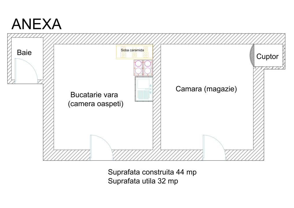 Anexă conectată: Bucătărie de vară completă, cămară, cuptor tradițional și baie de serviciu.
