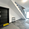 Pășești în holul generos (14,64 mp), unde lumina naturală te îmbie să explorezi mai departe. Din el, se ramifică două lumi. Pe trepte placate frumos urci la etaj iar pe o ușă metalică de apartament intri în spațiul de la parter.
