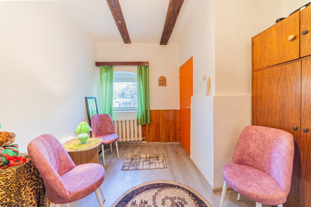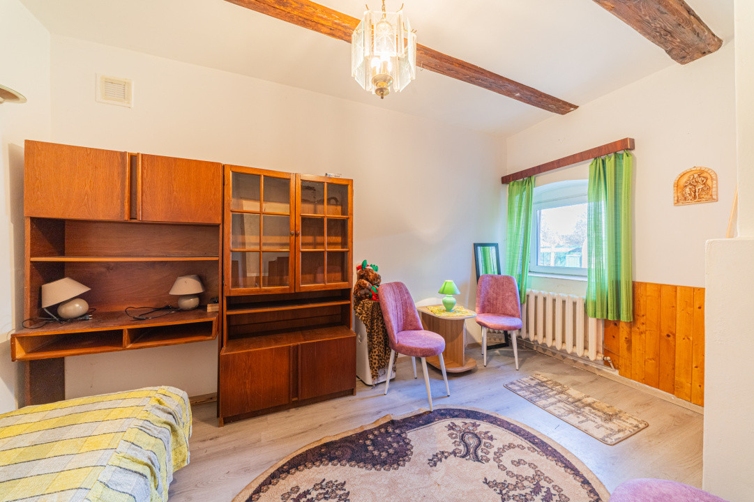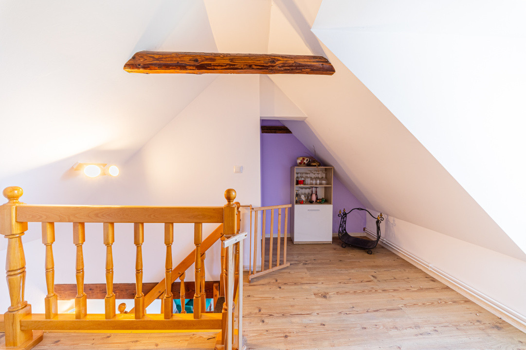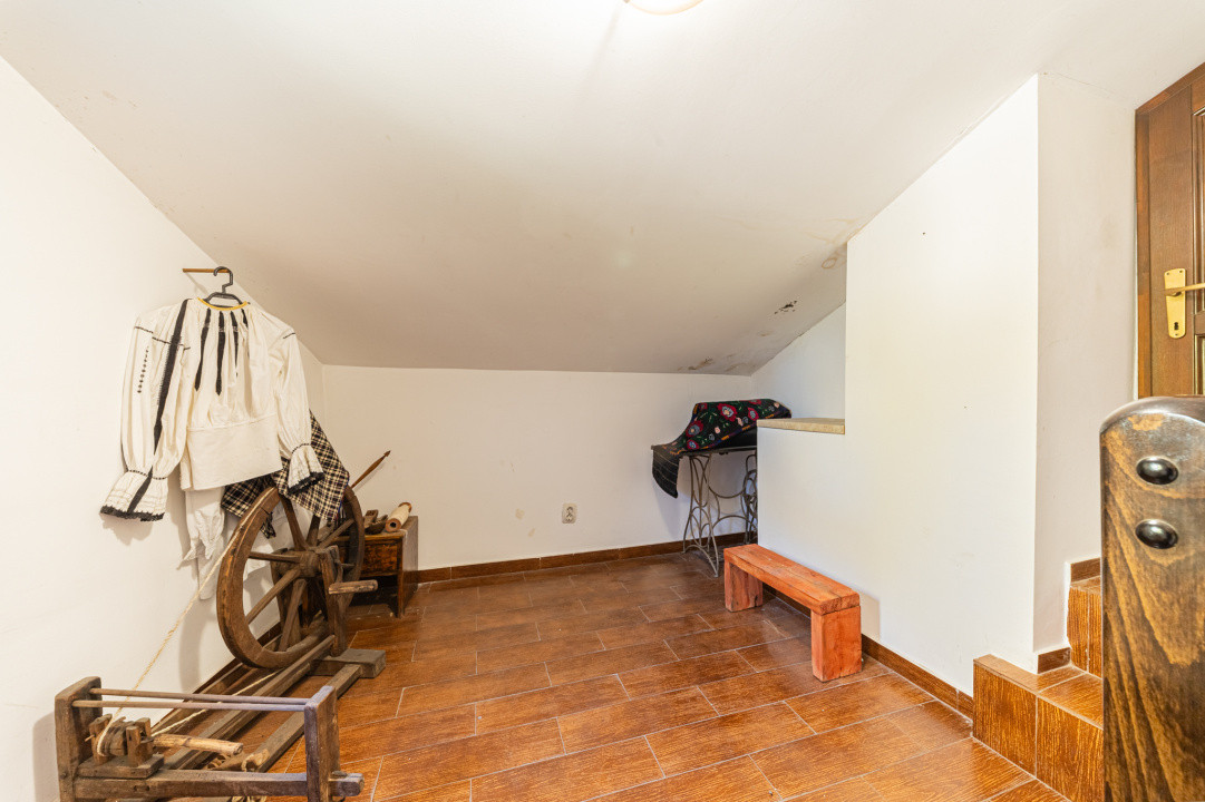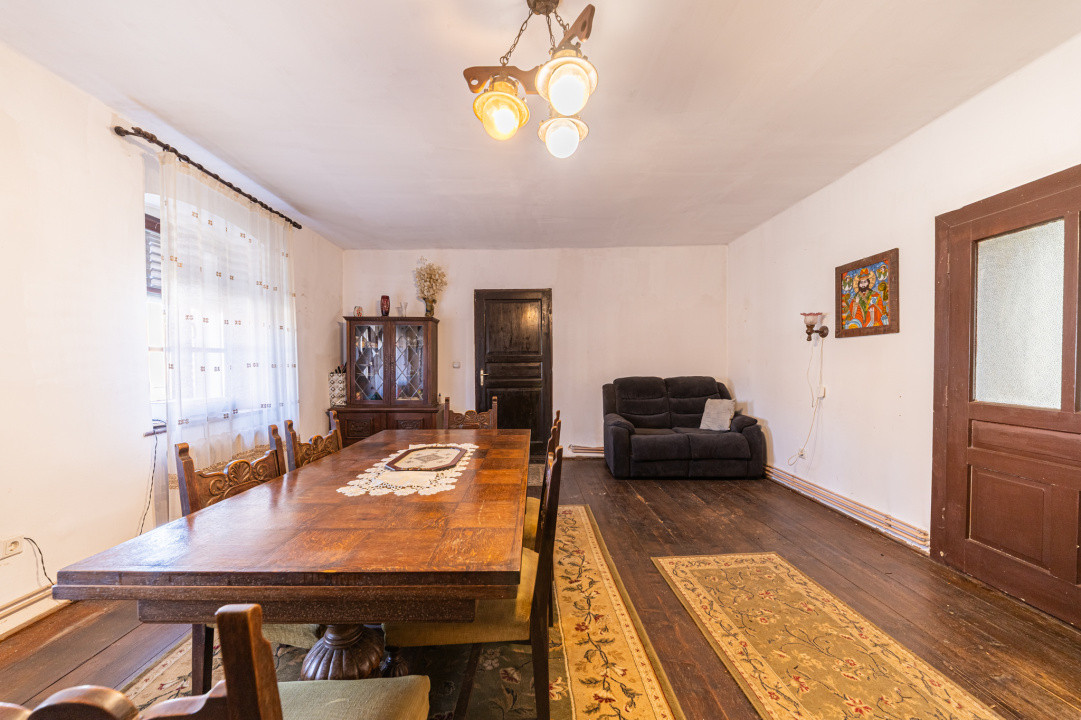 Primul corp al proprietății este casa veche săsească, construită în anul 1880. Aceasta păstrează elementele specifice arhitecturii tradiționale, oferind în același timp un nivel de confort adecvat. La demisol se află o pivniță de 30 mp. Parterul cuprinde un living, un dormitor, o baie, două holuri și o bucătărie, asigurând o compartimentare funcțională. Mansarda este organizată cu un hol, o cameră, un dressing și o baie, menținând farmecul autentic al construcțiilor săsești.