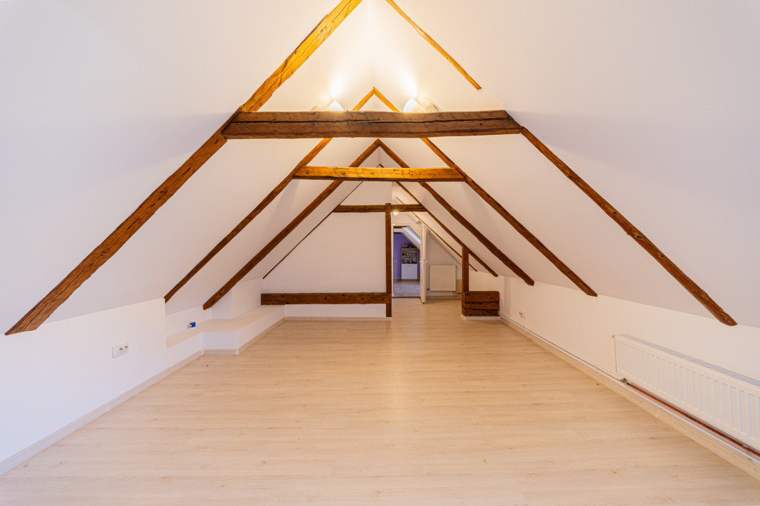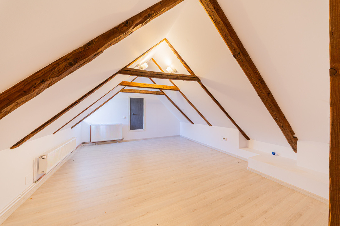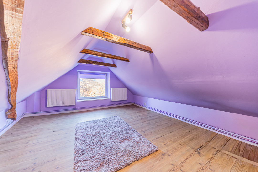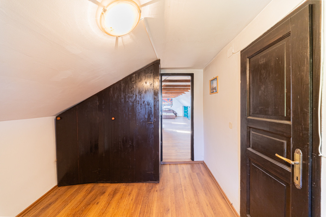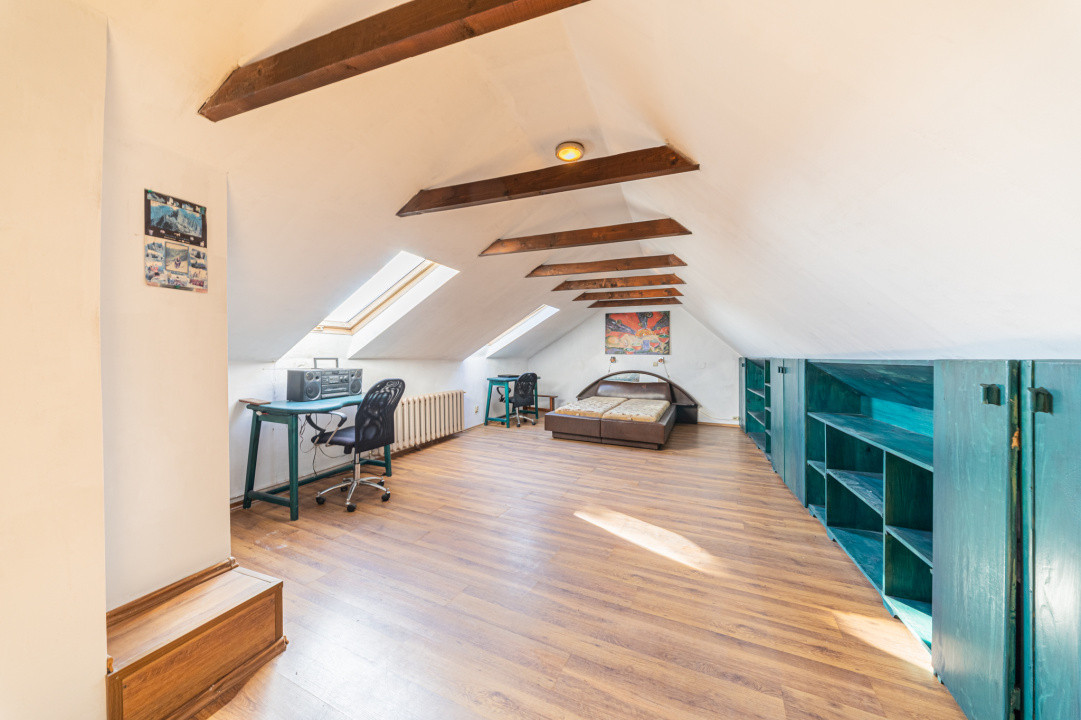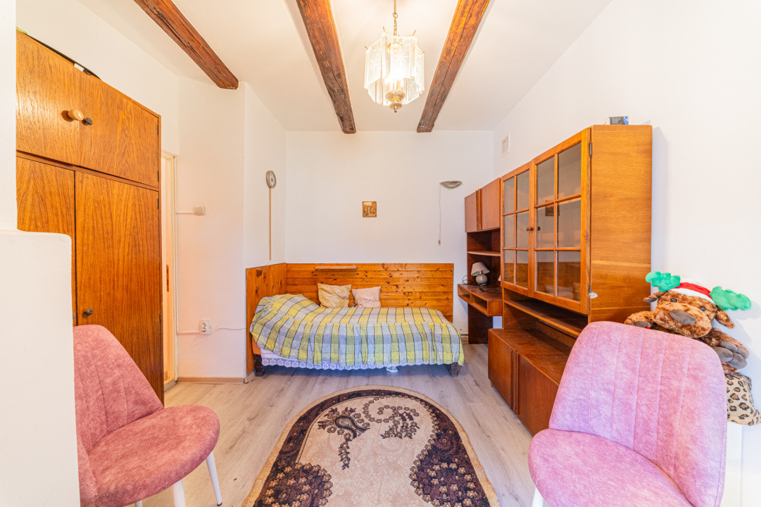 Primul corp al proprietății este casa veche săsească, construită în anul 1880. Aceasta păstrează elementele specifice arhitecturii tradiționale, oferind în același timp un nivel de confort adecvat. La demisol se află o pivniță de 30 mp. Parterul cuprinde un living, un dormitor, o baie, două holuri și o bucătărie, asigurând o compartimentare funcțională. Mansarda este organizată cu un hol, o cameră, un dressing și o baie, menținând farmecul autentic al construcțiilor săsești.