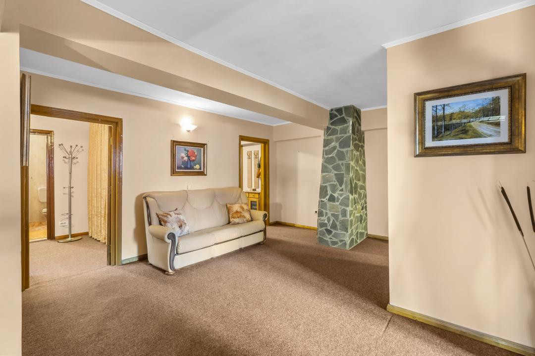 Proprietatea se vinde complet mobilată și utilată, fiind pregătită pentru mutare imediată. Construcția, realizată în anul 2000, este solidă și bine întreținută, datorită structurii cu grinzi și cadre din fier-beton, spațiile interioare permit recompartimentare în funcție de nevoile viitorului proprietar. Finisajele sunt moderne, instalațiile termice, electrice și sanitare sunt funcționale, iar izolația exterioară de calitate asigură confort termic pe tot parcursul anului. Orientarea sud-vest și ferestrele ample permit lumină naturală și priveliști panoramice asupra Munților Bucegi de la nivelurile superioare.