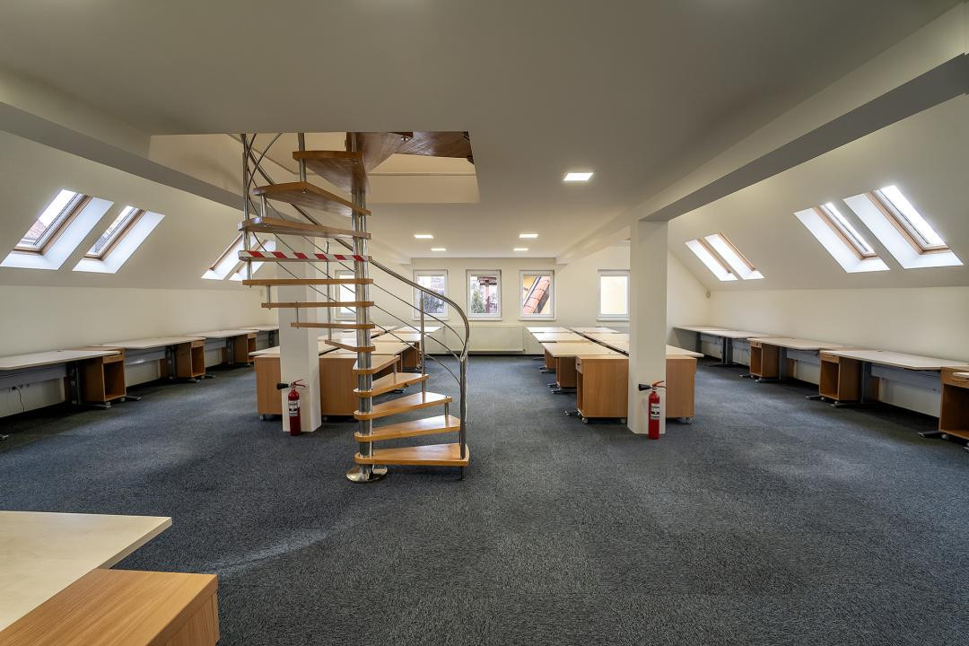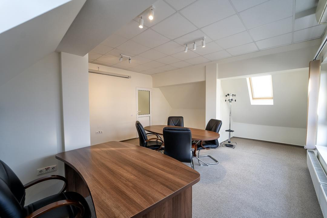 Mansardă (125.35 mp): Spațiu amplu, luminos, ideal pentru echipe creative sau săli de conferință.