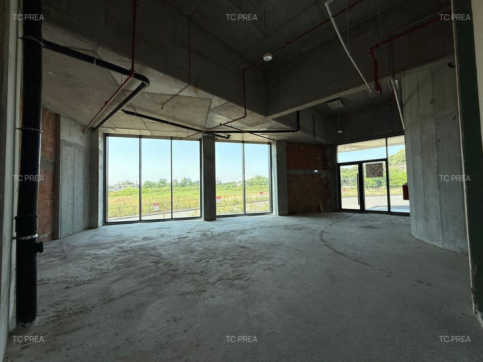 Fațadă vitrată amplă, ideală pentru expunere de brand și vizibilitate excelentă din trafic