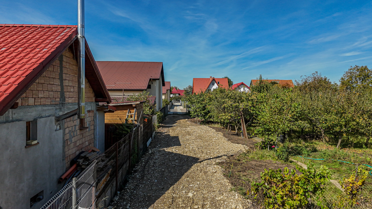 Terenul intravilan, cu o suprafață de 455 mp, este amplasat într-o zonă strategică, oferind multiple posibilități pentru construcția unei locuințe sau a unei proprietăți de investiție. Pe teren există deja o livadă de pomi fructiferi, care poate fi păstrată sau eliberată, în funcție de preferințele dumneavoastră. În plus, beneficiază de canalizare pe proprietate, iar apa se poate obține prin forare. Gazul și curentul electric sunt disponibile la strada asfaltată, la o distanță de 80-160 metri de lot. Pentru eliberarea autorizației de construcție, este necesar să se întocmească un PUD (Plan de Urbanism de Detaliu).