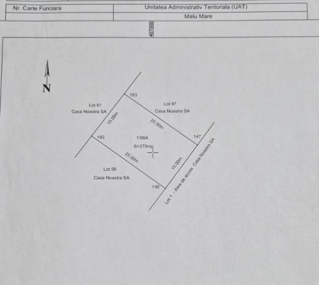 Un teren de 375 mp, cu impozit redus (36 lei/an), potrivit pentru o locuință spațioasă sau o investiție sigură.