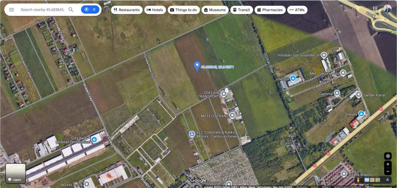 Vă propun spre vânzare un teren intravilan cu suprafata de 20 440 mp, cu deschidere de 56 m la drum si adancimea de 370 metri, aflate in Brașov, Zona Triaj, Strada Filiași.